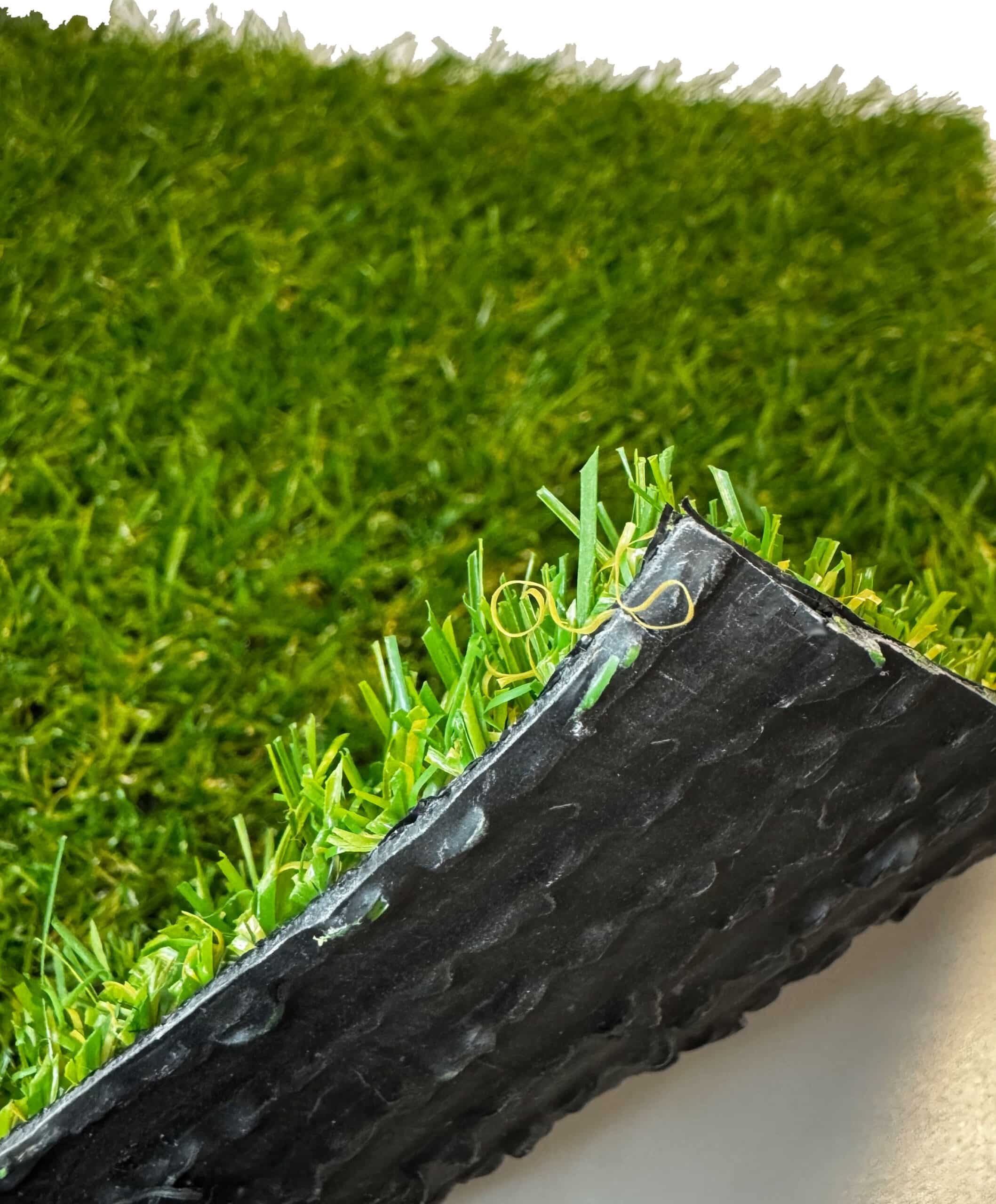 Soporte Resistente: La base está compuesta por una capa de PP reforzada con malla y recubrimiento en SBR Latex, asegurando estabilidad y larga duración bajo cualquier clima.
