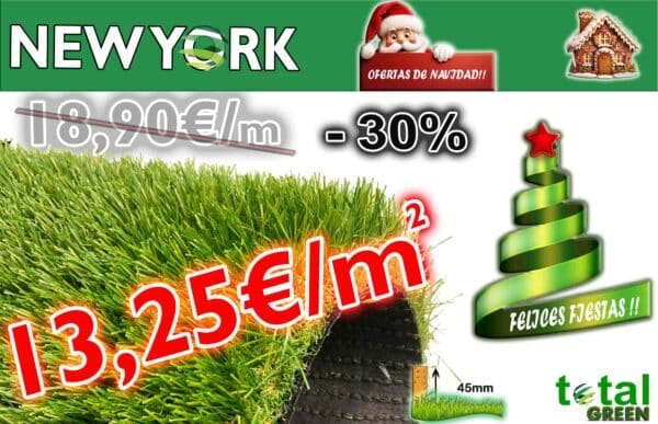 De la mano de las opiniones de los clientes más exigentes, traemos la nueva variedad de césped artificial de 45mm New York, con un acabado premium siendo el césped artificial barato 45mm con más calidad que se puede encontrar en la web.